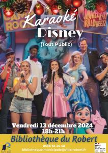 La bibliothèque municipale du Robert vous propose LE Vendredi 13 Décembre 2024 de 18h à 21h  "KARAOKE DISNEY"