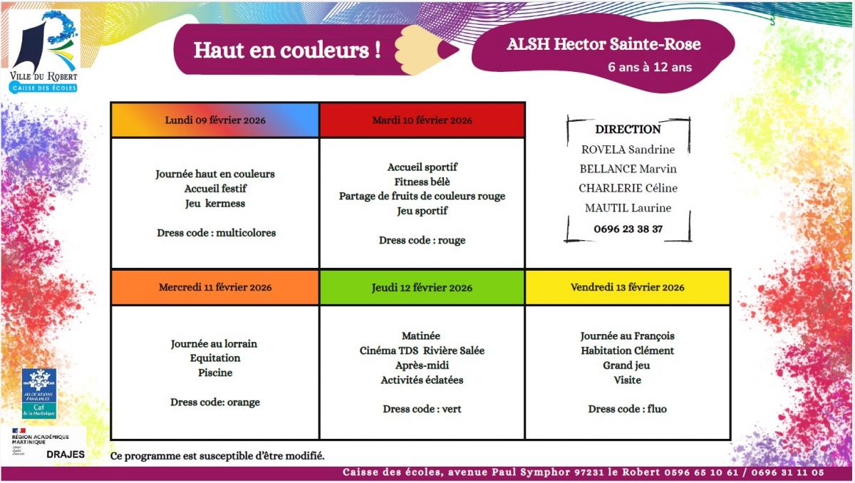 - ALSH Hector Sainte-Rose (Ecole Primaire élémentaire) 6 à 12 ans