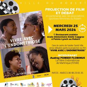 Dans le cadre des Ateliers Santé Ville, la ville du Robert et ses partenaires vous proposent la projection du film " VIVRE AVEC L'ENDOMÉTRIOSE" au restaurant scolaire de l'école de Pointe Lynch au Robert à 18h