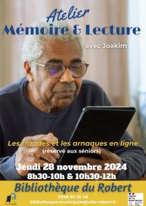 La bibliothèque municipale vous convie à son ATELIER MEMOIRE ET LECTURE avec Joakim (réservé aux seniors) de 9h à 11h à la bibliothèque.
