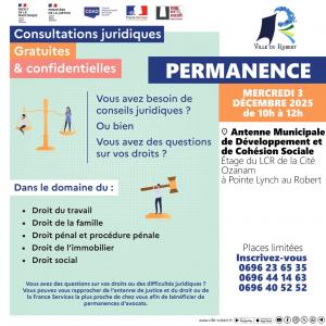 INSCRIVEZ-VOUS A LA PERMANENCE DES CONSULTATIONS JURIDIQUES GRATUITES ET CONFIDENTIELLES