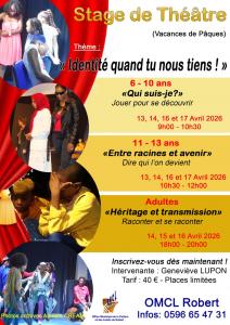 L'OMCLR organise pendant les vacances de Pâques (du 13 au 17 avril) un stage de théâtre sur le thème : "Identité quand tu nous tiens".