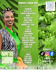 avec la participation de : CHARIVARI, SA KI FET FET, OTANTIK GERIKAN BASS, MOOV, DIFE NAN PAY, JAMES BAND, ALLIANCE 972, KARNIVAL ALL STARS, FMC, A SOU YO, GWANAVAL, FLECH BANBOU, NOU PA SAV, POM POM C'CHAN, BRADJACK ADDICT, LES HOMMES D'ARGILES, PETROL BAND et GWOUP231