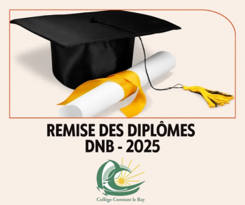 La Direction et l'équipe pédagogique et éducative du Collège Constant le Ray du Vert-Pré ont le plaisir de vous inviter à la cérémonie républicaine des remise des Diplômes National du Brevet VENDREDI 19 DECEMBRE 2025 à 17h.