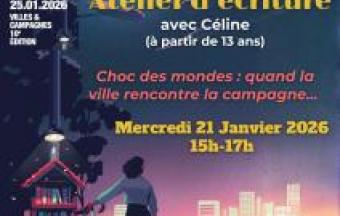 Dans le cadre de la nuit de la lecture, la bibliothèque municipale du Robert vous invite mercredi 21 janvier 2026 de 15h à 17h à son atelier d'écriture avec Céline sur le thème "Choc des mondes : quand la ville rencontre la campagne...".