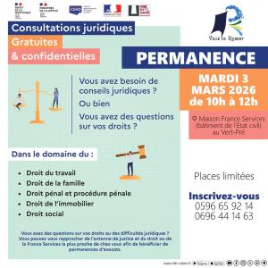 INSCRIVEZ-VOUS A LA PERMANENCE DES CONSULTATIONS JURIDIQUES GRATUITES ET CONFIDENTIELLES